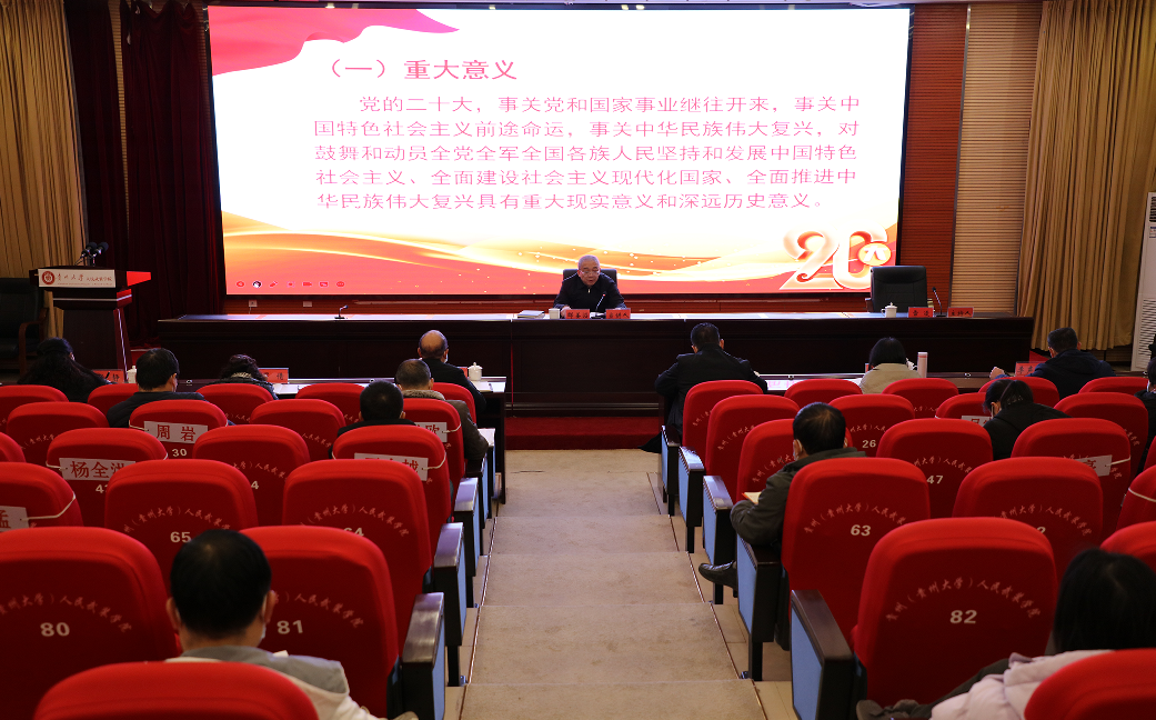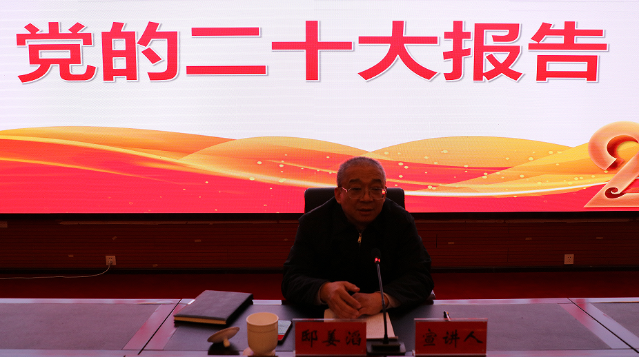 12月6日下午,省第十三次党代会代表、学院政委、党委书记邸姜滔在崇文楼111多功能厅专题宣讲党的二十大精神。宣讲报告会由学院党委副书记雷凌主持,学院党委班子成员、教职工、退休党员代表、学生代表共100余人参加。
