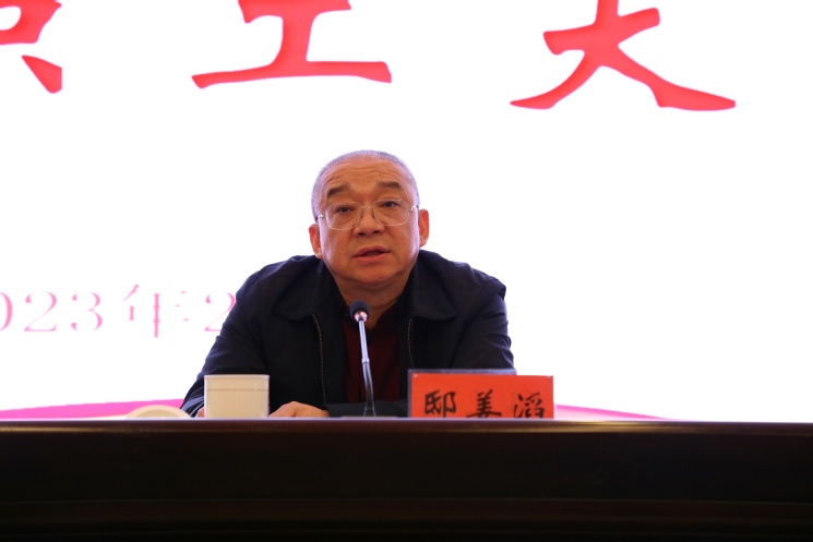 学院党委书记邸姜滔在讲话中指出,2023年是全面贯彻落实党的二十大精神的开局之年,也是学院“十四五”规划建设的攻坚年,是学院高质量发展的打拼年,更是学院能否实现历史性跨越的关键年。我们要统一思想、凝心聚力,团结奋斗、开拓进取,深入贯彻落实学院第二次党代会报告提出的“践行新发展理念,以高质量发展构建育人新格局”的总目标,全力推动学院高质量发展。