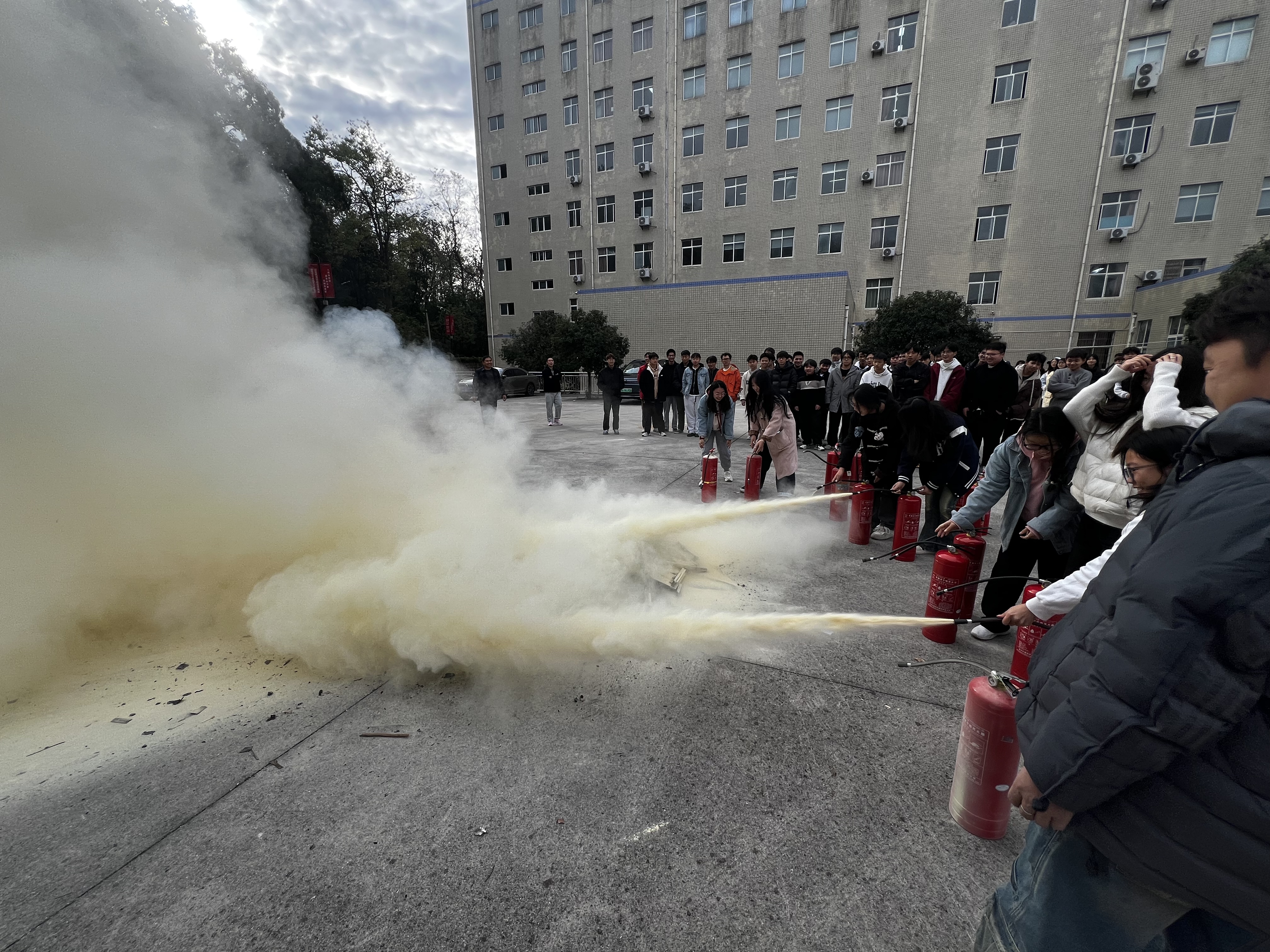 灭火实操环节,师生们亲身体验灭火流程。从清楚灭火器摆放位置,到灭火器的正确拿取方法“一提、二拔、三对准、四压”,到对准火源根部喷射,一气呵成。