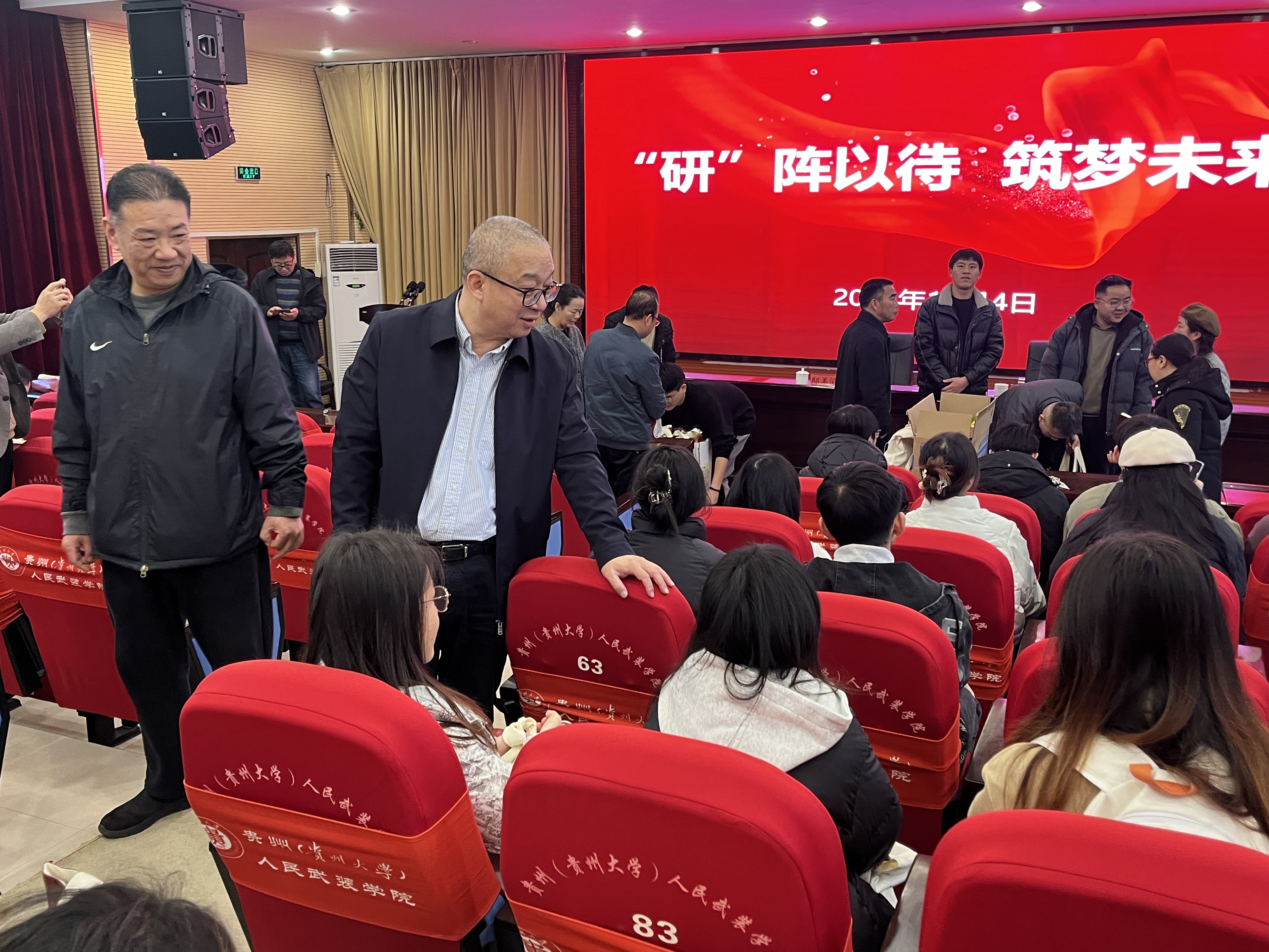 邸姜滔在致辞中说,考研的号角已经吹响,让我们用汗水浇灌希望,用拼搏铸就辉煌。他勉励每一位考研学子在知识的较量中超越自我,实现梦想,为未来添上浓墨重彩的一笔。叮嘱同学们注意防寒保暖,注意饮食营养,合理安排作息时间,调整好心态,保持身体健康,以最佳状态迎接考试。祝愿同学们在温暖的支持和鼓励中考研顺利,金榜题名,成功“上岸”!